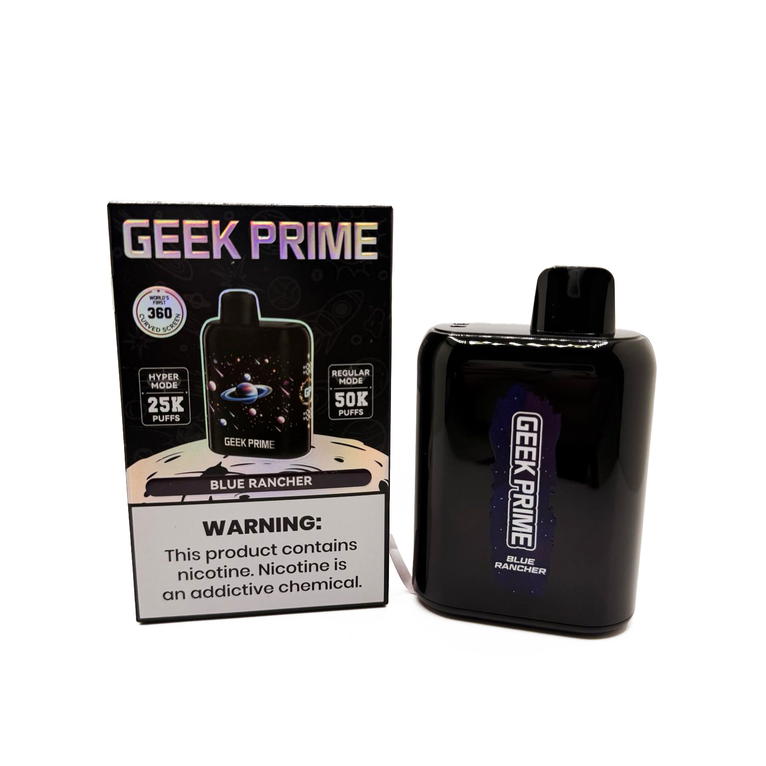 The Geek Prime – Blue Rancher delivers a sweet and tangy vaping experience with the bold flavor of blue raspberry candy. This luscious, candy-inspired flavor captures the juicy, tart essence of classic blue raspberry with a smooth finish for a satisfying hit. Featuring dual vaping modes—Regular Mode with up to 50,000 puffs and Hyper Mode with up to 25,000 puffs—this device provides flexible vaping options with impressive longevity. Its sleek design and innovative 360° curved screen make it both stylish and functional, perfect for vapers who want a premium candy flavor in a durable, portable device.